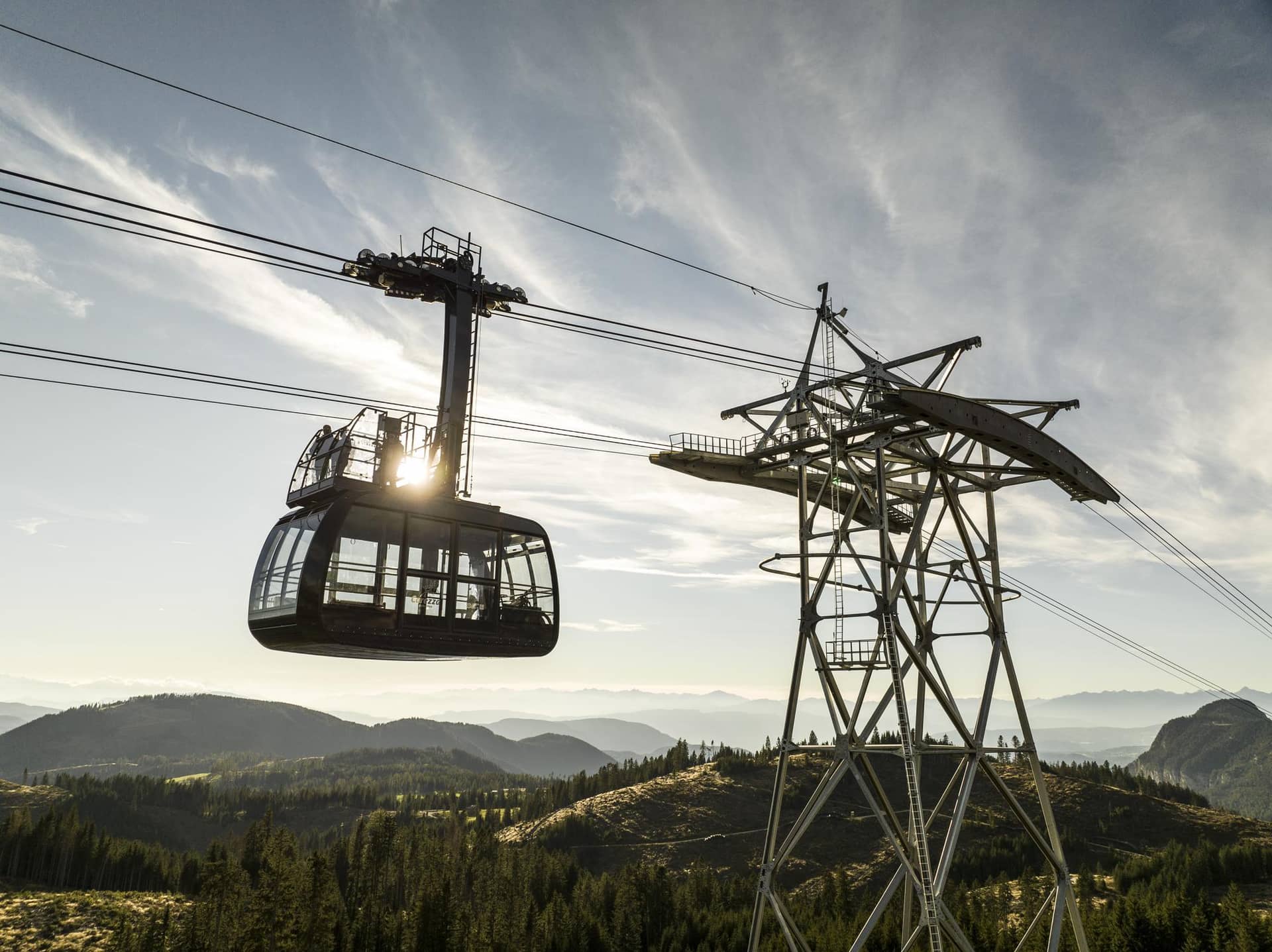 Con la nuova funivia di Tires si realizza un collegamento diretto via fune da Tires/San Cipriano al resort sciistico, escursionistico e ciclistico Carezza Dolomites. In soli 7 minuti di viaggio, la funivia a va e vieni lunga 3,8 km con 60 posti supera un dislivello di 644 metri. Un tracciato elevato e l'esecuzione come prima funivia cabrio d'Italia valorizzano enormemente l'esperienza di viaggio e paesaggistica. Dispone infatti di un balcone panoramico, raggiungibile tramite un accesso separato nell'edificio della stazione. Questo permette a 10 persone, con un supplemento, di trascorrere il viaggio all'aperto godendosi la vista sul Catinaccio "con il vento tra i capelli".